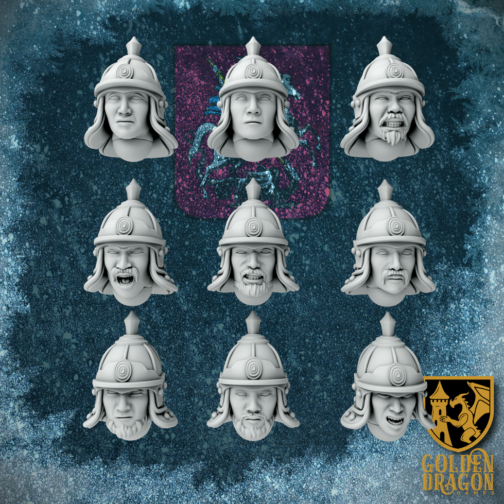 - Includes 10 unique faces wearing 7 different types of headgear: Loovuuz, Fur Hats, Ceremonial Helmets, Standard Russian Field Hats, Helmets, Fur-Lined Helmets, and Kolchak Hats. All told 156 unique pieces!